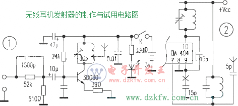 图中所示的是无线耳机的发射器制作与试用体会电路。