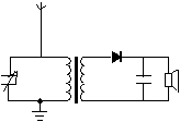 上图是晶体二极管的检波电路,是利用晶体二极管的单向导电性来进行检波的。调谐电路中产生的是经过调幅的高频振荡电流,L1和L2绕在同一磁棒上,由于互感作用,在L2上产生的是高频交变电压.由于二极管的单向导电性,通过它的是单向脉动电流,这个单向脉动电流既有高频成分,又有低频的声音信号,高频成分基本从电容器C(复习旁路电容器)通过,剩下的音频电流通过耳机发声。(用示波器观察检波过程)实际上就是一个晶体二极管收音机的电路图.这种收音机声音很小,只能用开机收听本地电台.为了提高收音机的接收性能,需要用放大器把微弱的信号放大.下图示是加有放大器的收音机方框图.由天线和调谐电路接收到的高频调幅电流,先通过放大器进行高频放大,然后进行检波和低频放大,放大后的音频电流输送到喇叭,使它们发出声音。