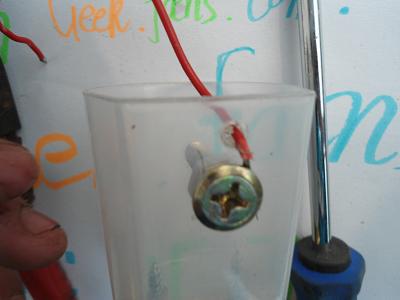找一根导线,固定在瓶盖上,这个螺丝就是接收头。(如果做电视天线,再在旁边接一条线就好了)