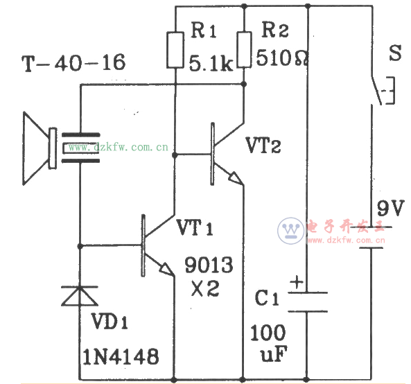 最简单无线发射电路图(二):分立元件构成的超声波发射电路