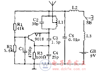 图1最简单的电感三点式无线电遥控发射器