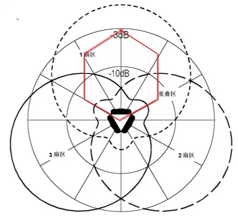 每个扇区的天线在最大辐射方向偏离±60º时到达覆盖边缘,需要切换到相邻扇区工作。在±60º的切换角域,方向图电平应该有一个合理的下降。电平下降太多时,在切换角域附近容易引起覆盖盲区掉话;电平下降太少时,在切换角域附近覆盖产生重叠,导致相邻扇区干扰增加。