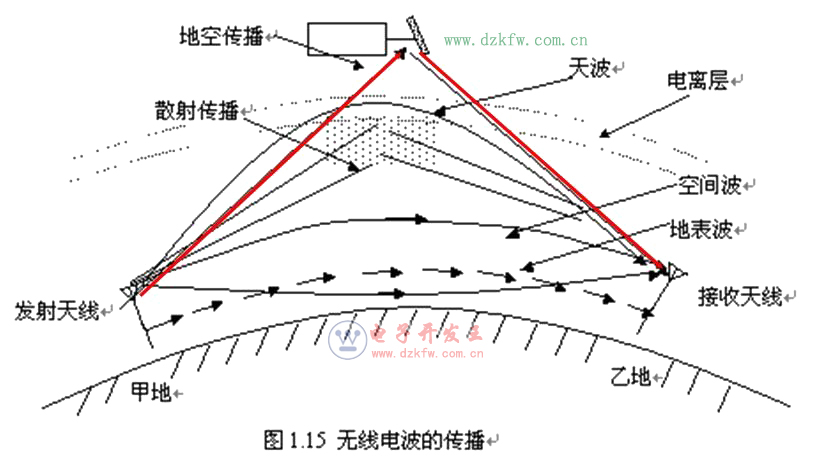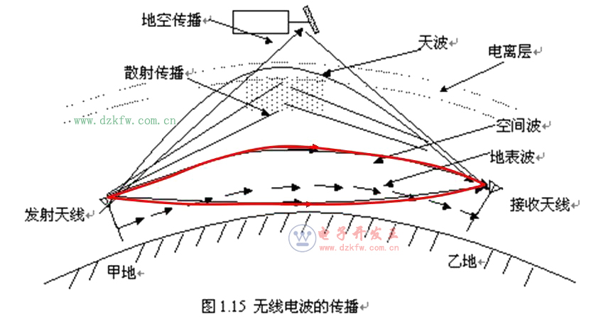(1)地波传播:无线电波沿着地球表面传播,称为地波传播,也称地表波传播。