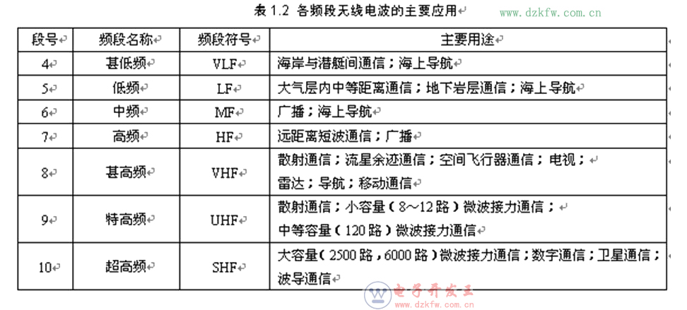 各个频段无线电波的应用范围也有所不同,下表给出了不同频段无线电波的主要应用。