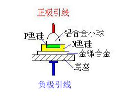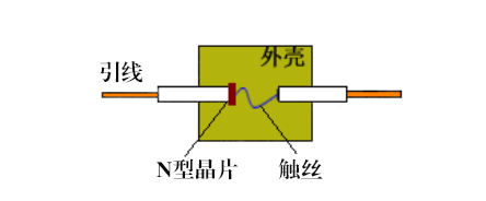 点接触型二极管 点接触型二极管是在锗或硅材料的单晶片上压触一根金属针后,再通过电流法而形成的。