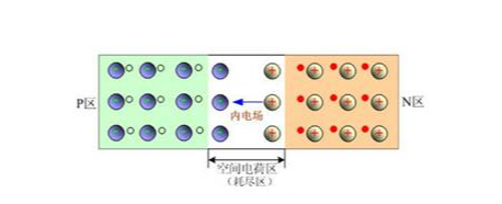 由P型半导体和N型半导体相接触时,就产生一个独特的PN结界面,在界面的两侧形成空间电荷层,构成自建电场。
