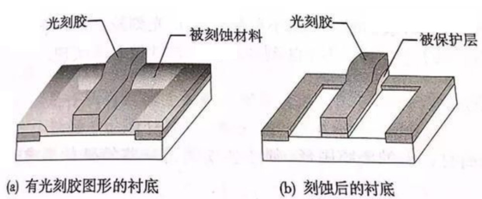 刻蚀是使用化学或者物理方法有选择地从硅片表面去除不需要材料的过程。通常的晶圆加工流程中,刻蚀工艺位于光刻工艺之后,有图形的光刻胶层在刻蚀中不会受到腐蚀源的显著侵蚀,从而完成图形转移的工艺步骤。刻蚀环节是复制掩膜图案的关键步骤。