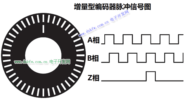 这样,增量型编码器A相/B相/Z相的输出信号如下图所示:
