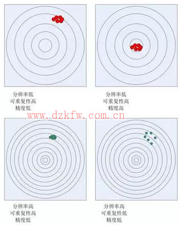 而我们通常讨论精度的时候,常常将“精度”和“可重复性”二者合二为一,我们往往认为精度更倾向于用“真实度”来表示。当我们讨论精度时往往指的是“可重复性高的高精度”。