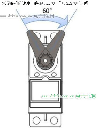 转速由舵机无负载的情况下转过60。角所需时间来衡量,常见舵机的速度一般在0.11/60‘~0.21S/60^之间。
