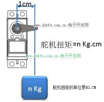 舵机扭矩的单位是KG.CM,这是一个扭矩单位。可以理解为在舵盘上距舵机轴心水平距离1CM处,舵机能够带动的物体重量。
