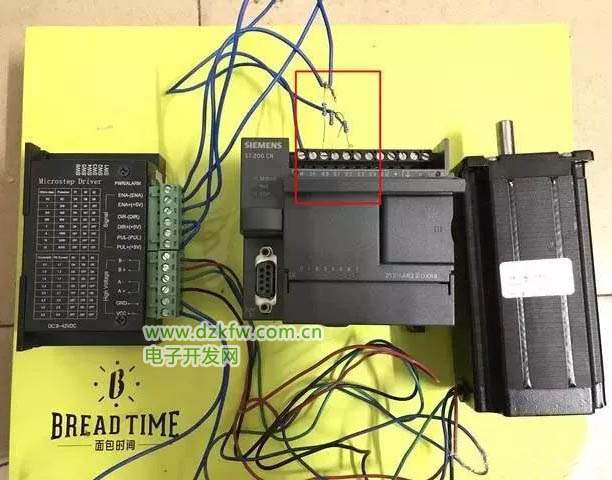 该步进电机的信号电压是5V,西门子PLC使用的电压为24V,所以要接入驱动器,需要串接1.2K,1/4W的电阻,如上图红色部分所示。