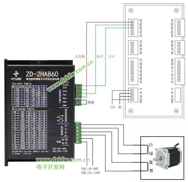 驱动器的细分是指:把步进角再分割成N等分,如,8细分就是把1.8度的步进角再分成8分,细分后电机每一步进就是1.8度÷8=0.225度,转一圈就要:360度÷0.225度=1600个脉冲。