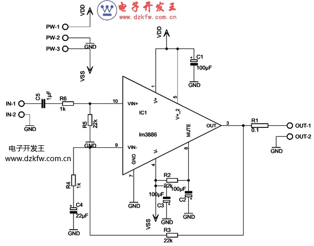 IC1- LM3886 - 音频放大器集成电路