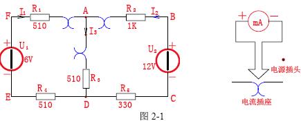 利用实验挂箱上的“基尔霍夫定律/叠加原理”线路,按图2-1 接线。