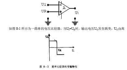 图8-1 所示电压比较器的传输特性如图8-2 所示。