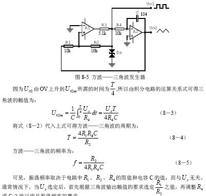 3、 图8-5 所给电路参数,设U V ,计算三角波的幅值及频率。 z = ±4