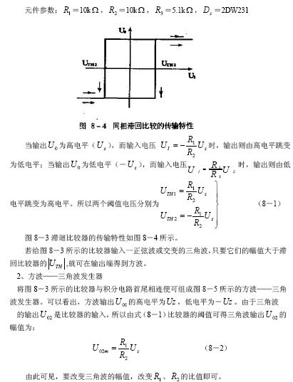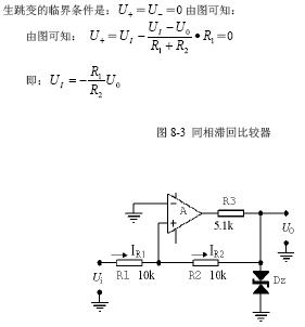 回变化。图8-3 所示为一滞回比较器,由于运放的反相输入接地,所以比较器输出发