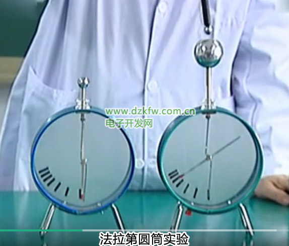 这种说法是错误的。但是,只通过讲解使学生真正理解是相当困难的。为了解决这个难题,笔者对“法拉第圆筒实验”做了一些小小的改进,在原来移电球的基础上又增加了一长一短两个移电棒(一个带有绝缘柄的金属导体棒),要求长移电棒的长度必须保证其与圆筒内壁接触时有一段探露在圆筒外(一般是绝缘手柄一端露出圆筒外,这一点是实验成功的关键!但对具体长度没有要求,为了提高实验的可见度,可适当增大圆筒的大小和导体棒的长度),短移电棒的长度则必须保证其前端与圆筒内壁接触时另一端也在圆筒内。演示时可以看到这样的实验现象:当用移电球从圆筒内表面取电荷时,验电器箔片不张开;而当用长移电棒取电荷时,箔片会张开很大的角度。这种强烈的对比必然会引起学生的注意和深思,此时再用短移电棒从圆筒内表面取电荷再与验电器接触,发现验电器的箔片也不张开,然后进行如下解释:处于静电平衡状态的带电导体,由于同种电荷之间的斥力作用,都会被排斥到导体的最远端,表现在只分布在导体的外表面,当移电球与圆筒内壁接触时,移电球与圆筒就形成了一个导体,由于移电球处在圆筒内部,在其上没有电荷分布。而当移电棒与圆筒内壁接触时,由于移电棒有一端伸出圆筒外,伸出圆筒外的这端自然变成了最远端,因此移电棒就带上了大量的电荷。此时再演示用短移电棒从圆筒内取电荷,就会发现仍然不能使验电器的金属箔片张开。这种实验现象会使学生的思维受到强烈的震撼,再加以适当的讲解,问题自然就会迎刃而解了。