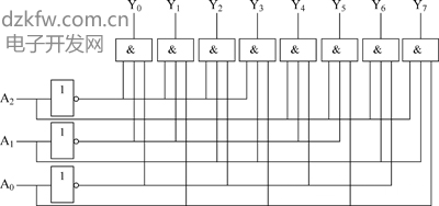 从表1中所示可以看出,输入信号的每一种组合对应着一个输出端的高电平信号,即输出端为高电平(1)时认为该输出端有输出信号。当然,根据有需要也可以定义输出端为低电平(0)时认为该输出端有输入信号,此时称输出端低电平有效。