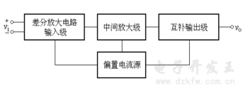 集成运算放大器是一个高增益直接耦合放大电路,它的方框图如图1所示。