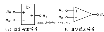 1)集成运算放大器有三个引脚:一个称为同相输入端,即该端输入信号变化的极性与输出端相同,用符号‘+’或‘IN+’表示;另一个称为反相输入端,即该端输入信号变化的极性与输出端相反,用符号“-”或“IN-”表示。输出端一般画在输入端的另一侧,在符号边框内标有‘+’号。实际的运算放大器通常必须有正、负电源端有的品种还有补偿端和调零端。