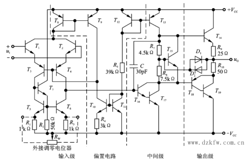 1)输入级要使用高性能的差分放大电路,它必须对共模信号有很强的抑制力,而且常用双端输入、单端输出的形式。