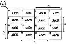 D的每种取值组合,与方格内的最小项一一对应,例如,0000对应于