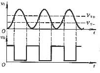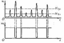 由图3可见,若将一系列幅度各异的脉冲信号加到施密特触发器的输入端时,只有那些幅度大于
