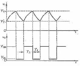 无论出现上述的那一种情况,都可以通过用施密特触发器整形而获得比较理想的矩形脉冲波形。由图可见,只要施密特触发器的
