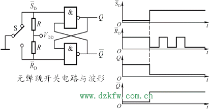 1)用基本RS触发器实现无弹跳开关连接的说明。