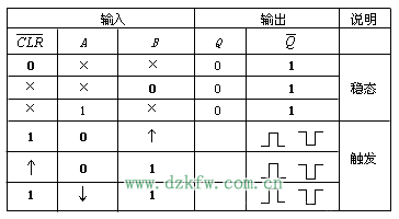 端子A、B分别为负脉冲下降沿和正脉冲上升沿边沿触发端。Q和