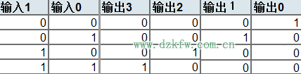 请看解码器的真值表(图8)。由该表可知, 2个输入信号可通过4个输出信号中的一个输出。比如当两个输入为二进制时,让4个输出信号分别对应十进制的0、1、2、3,就可以认为这是一个将二进制解码为十进制的电路。