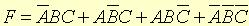 逻辑状态表示的逻辑函数也可用逻辑表达式来表示。最常用的是与一或表达式。即:将逻辑状态表中输出等于1的各状态表示成全部输入变量(正变量及反变量)的与函数(例如表1中,当ABC=011时,F=1,可写成F=