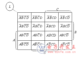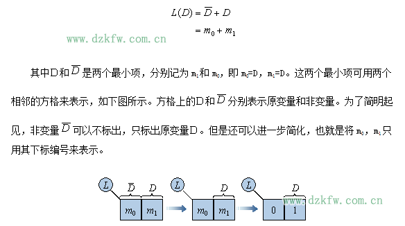 比如有一个变量D,其逻辑函数L的最小项表达式为: