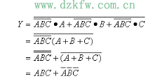 只当A,B,C全为“0”或全为“1”时,输出Y才为“1”,否则为“0”。故该电路称为“判一致电路”,可用于判断三个输入端的状态是否一致。