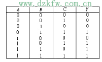共有八种组合,Y=I的只有四种。逻辑状态表如下表所示。