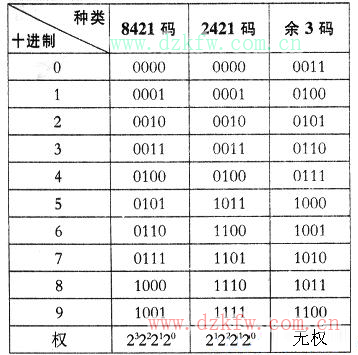 其余码制还有2421码,其权值依次为2、4、2、1;余3码,由8421BCD码每个代码加0011得到;格雷码是一种循环码,其特点是任意相邻的两个数码,仅有一位代码不同,其他位相同。