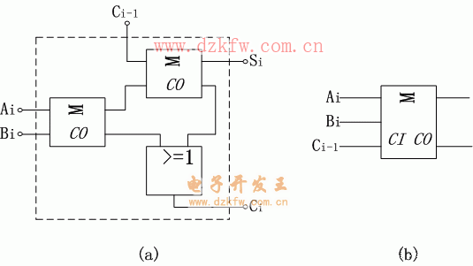 。全加器也是一种组合逻辑电路,其图形符号如上图(b)所示。