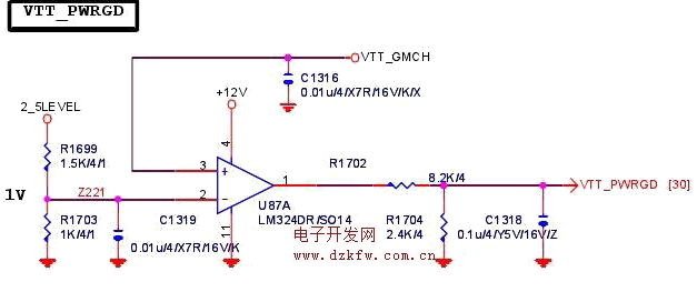 分析一下电路,2.5v经电阻分压得到1V输入到V-端,当总线电压正常产生1.2v时,输入到V+,此时V+电压比V-电压高,输出一个高电平到CPU电源管理芯片的EN开启脚。如果总线电压没输出或不正常少于1v,此时V+电压比V-电压低,输出低电平。