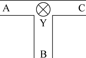 例如,如图1所示,有一个T形走廊,在相会处有一盏路灯,在进入走廊的A、B、C三地各有一个控制开关,都能独立地进行控制。