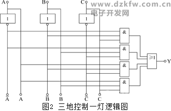 图1 三地控制一灯示意图