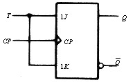 T触发器可控制触发器每接受一个CP信号就翻转一次,所以经常称T触发器为“反转触发器”。又因为来一个CP信号翻转一次,那么其状态就可以用来记忆CP输入的个数,所以又称为“计数触发器”。T触发器可以很方便地用JK触发器和D触发器构成(如图2),
