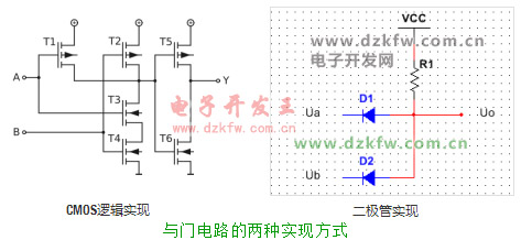 与门的实现方法包括使用CMOS逻辑、NMOS逻辑、PMOS逻辑以及二极管实现等。