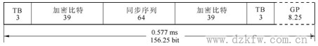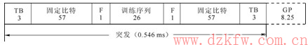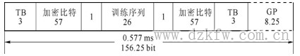 图5 普通突发脉冲序列 57个加密比特:加密语音、数据或控制信息借用标志F:表明借用一半业务信道资源给FACCH
