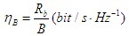 在数字调制中,常用带宽效率ηb 来表示它对频谱资源的利用效率,其定义为在一给定的频谱带宽(1Hz)内的数据通过率。若为数据率(也称为比特率,单位:bit/s),是被调制信号所占据的带宽,则带宽利用率定义为