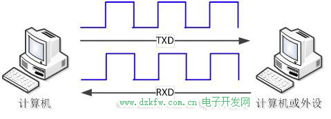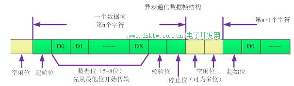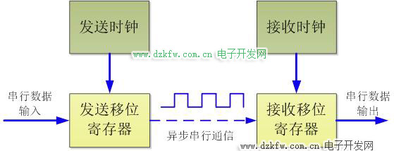 如图 4所示,发送与接收方各自配置有独立的时钟进行控制,叫异步串行通信。