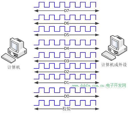 计算机通信是指计算机与外界的信息传输,既包括计算机与计算机之间的传输,也包括计算机与外部设备,如U盘、打印机和磁盘等设备之间的传输。在通信领域内,根据每次传送的数据位数,计算机通信可分为:并行通信和串行通信。