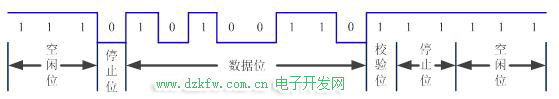 每个字符都是以起始位开始(“0”),以停止位(“1”,停止位为1~2位)结束;