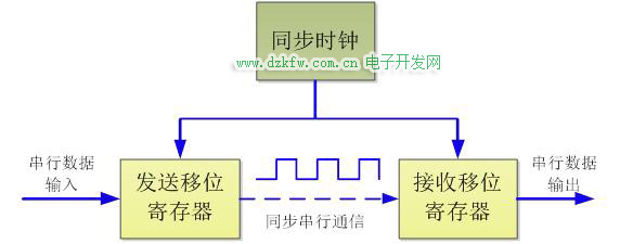 如图 7所示,发送与接收由同一个时钟控制,叫同步串行通信。